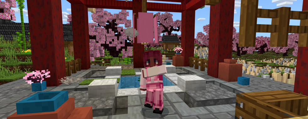 Woah… is that a dragon statue? This cherry temple is the perfect tranquil place to invite your friends over, and to defend from dangerous foes!